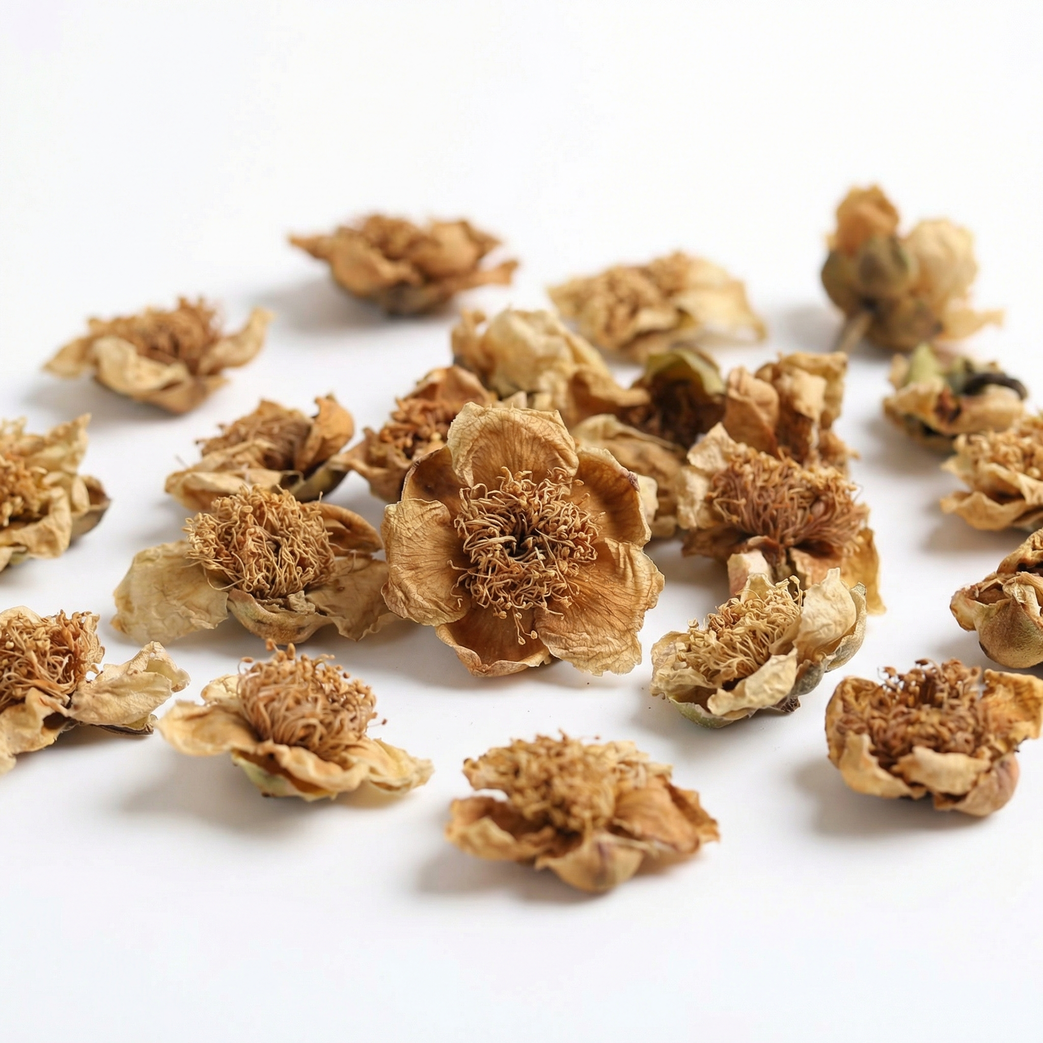It does not compete with the beauty of spring, but blossoms alone in the cold of winter. Our camellia flowers are harvested from the newly blooming buds of ancient tea trees. The petals are thick and the color is pure. Its fragrance is not as bold as that of roses, but rather delicate and restrained, with a hint of the refined charm of almonds. When you savor it, it is like savoring the restraint and tenacity in Eastern aesthetics.
