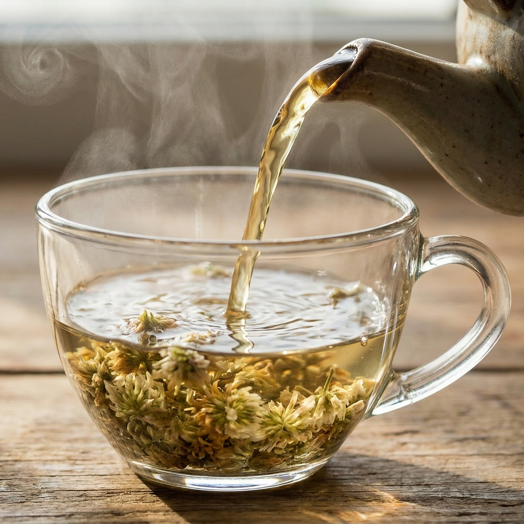 Wait for 2-3 minutes. The tea soup gradually turns into a clear, pale golden color.